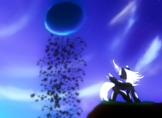 Two ponies would be running, a mare and a stallion. A joyful run, this was not. As they were being chased by ponies who wore dark gray metal helmets with a green neon light as the eyes. They had already figured out that the technology made the wearer submit to The Tyrant’s will- none dared to speak his name, as it was rumored that any who even spoke his name would become targeted by his Elite Guard- those who were already guards before he had enslaved the Empire.Eventually the pair heard the hoofsteps of their oppressors fade into the distance, luckily the one who guarded the area was a civilian who was enslaved. In the empire there were two types of ponies, those who submitted to The King, allowing their will to become enslaved by dawning the helmet to protect their family from execution, and the ones who fought back by joining a resistance group who sent letters out to the Princesses of Equestria. They maintained their anonymity by becoming workers in the mines and in construction to build monuments and crystal buildings for the King.As the pair escaped their pursuers, they eventually returned to their home. As they opened the door they would stare at a lavender mare with a gentle blue mane who held a young foal in her arms, a small nub as a unicorn horn on the foal. The pair talked to her, familiarity in their voice, although laced with a hint of concern.“How was he? Was he fussy at all today?” The Mare from the duo would ask, seemingly the mother.The lavender mare would respond in kind “Oh he’s been delightful! You truly have a beautiful son. He didn’t do much of anything, just ate and slept”“That’s good, did anyone stop by the house today?” The stallion would intercede, verifying the concern.The lavender mare put her hoof up to her chin, thinking about the events of the day. “Yes actually! One of.. his guards came by, but when he saw it was just me, he said that he was going to pay you another visit later. Sounded kinda friendly!” She said optimistically.Her optimism was incorrectly placed.The duo’s eyes widened at the mare, and just as they were about to speak, a shadow overtook the house, darkening it. The caretaker cowered, covering the foal with her wing while the two ponies took cover, it was only a matter of time before a commanding voice boomed over the entirety of the house.“Your King, King Sombra commands you to come out from that structure, failure to do so will result in a painful end for all involved” The deep voice would state.The caretaker looked toward the two, as well as the foal in her wing, she stood up, slowly handing the foal off to the mother as she walked to the door, with a hoof up. As she did the Guard leaned and whispered something to the tall, dark gray colored stallion who’s presence would send shivers down her spine, and his green and red eyes froze her in her tracks.“As compensation for giving us this opportunity, you may leave.” The King would say in a low tone, almost growling. The lavender mare would run off, fearing for her own life. “As for the rest of you, if you do not come out now, I will dispose of you, and this structure you call a house.” He snarled, The two guards on either side of him charging up their horns.If this interests you, be sure to check out the book here on wattpad HERELunar Nighthawk Character and Imagery belongs to Qriticc